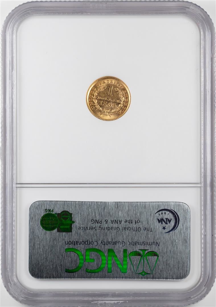 One 1854 Type 1 $1 Liberty Head Gold Dollar Coin NGC MS61. NGC Certified.