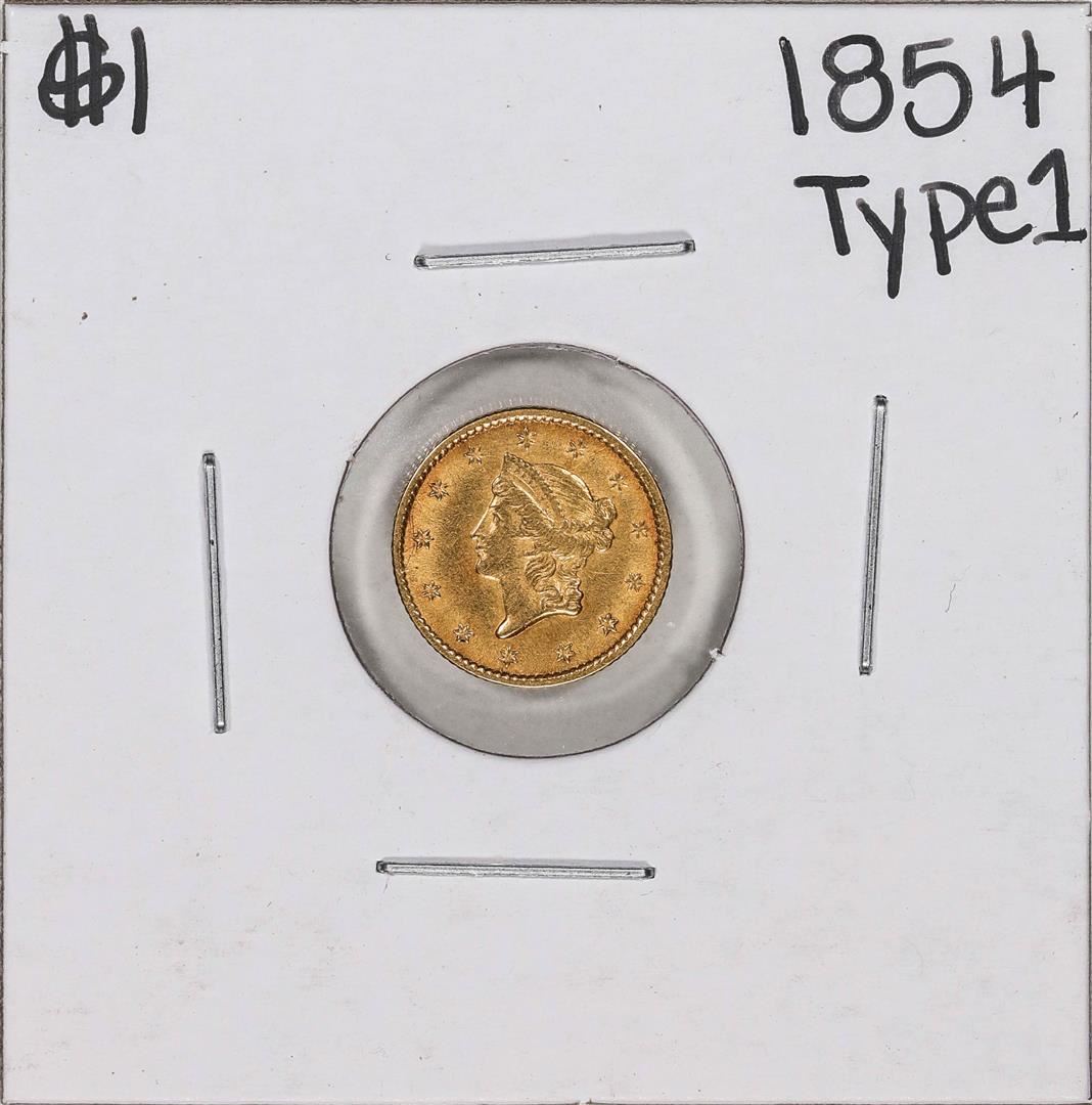 One 1854 Type 1 $1 Liberty Head Gold Dollar Coin.