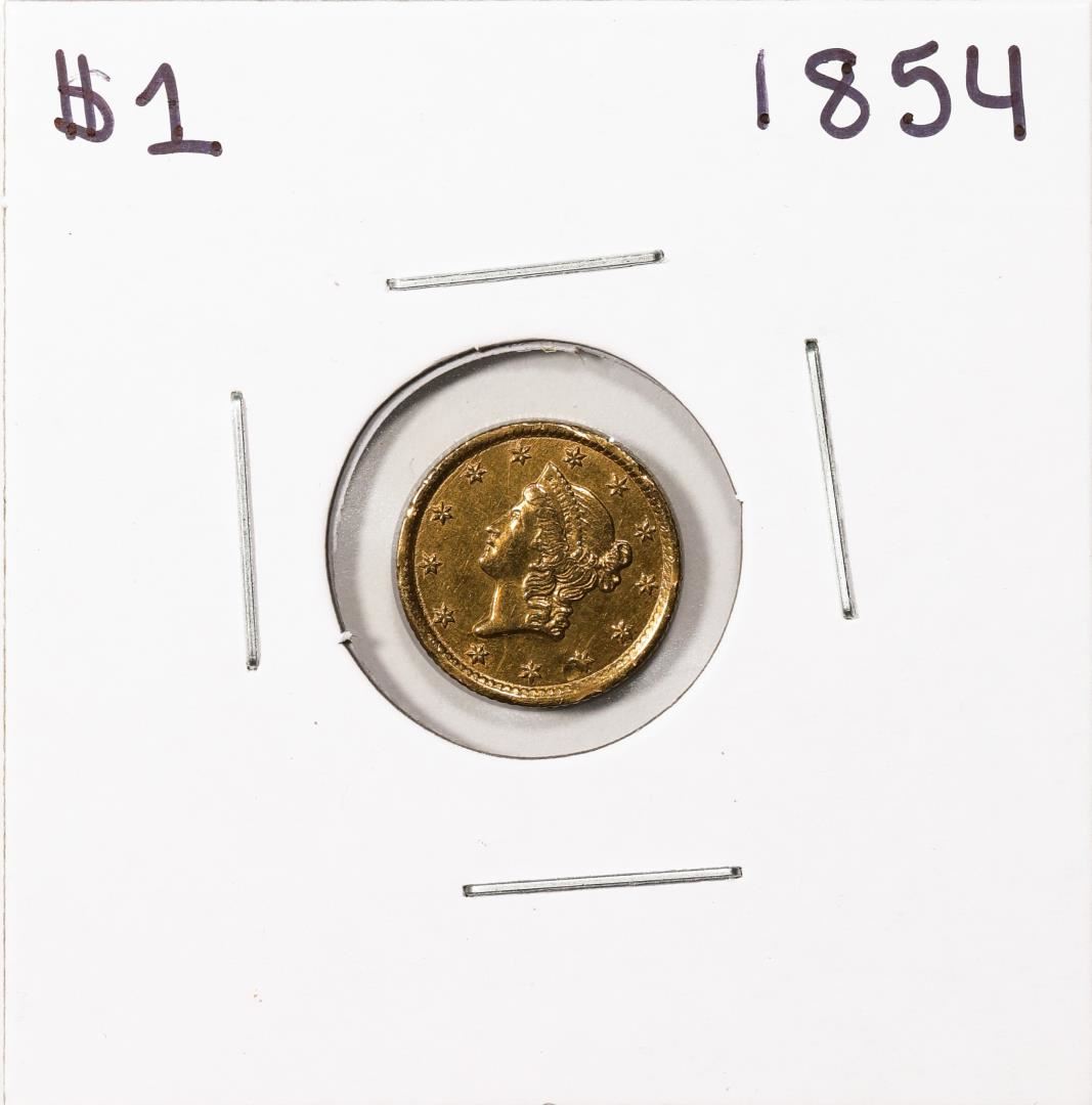 One 1854 Type 1 $1 Liberty Head Gold Dollar Coin.