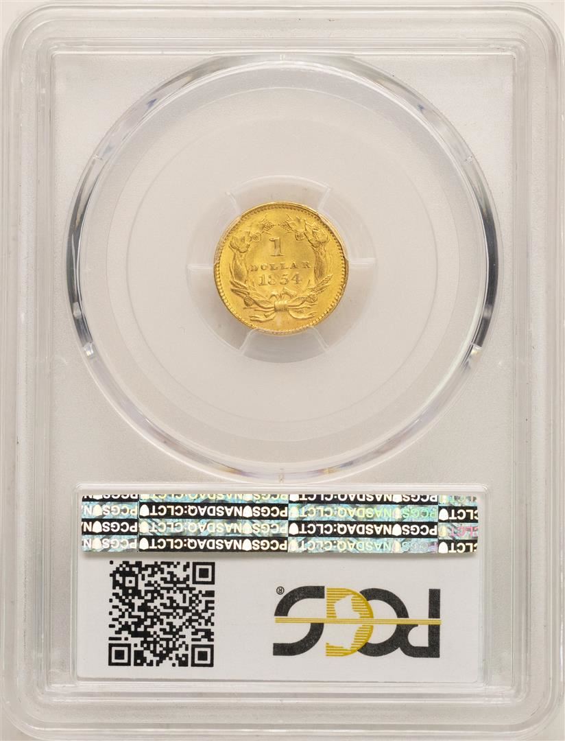One 1854 Type 2 $1 Indian Princess Head Gold Dollar Coin PCGS MS63. PCGS Graded.
