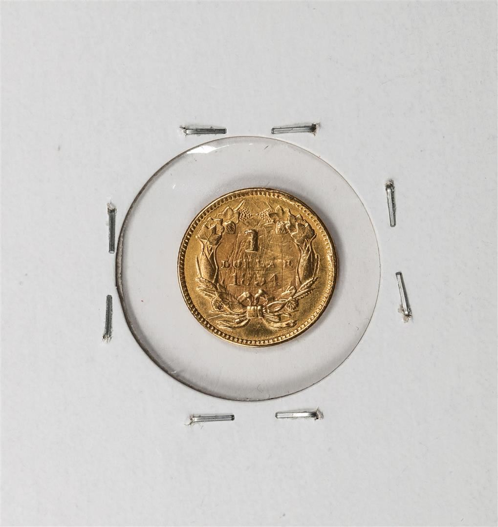 One 1854 Type 2 $1 Indian Princess Head Gold Dollar Coin - Scratched Reverse.