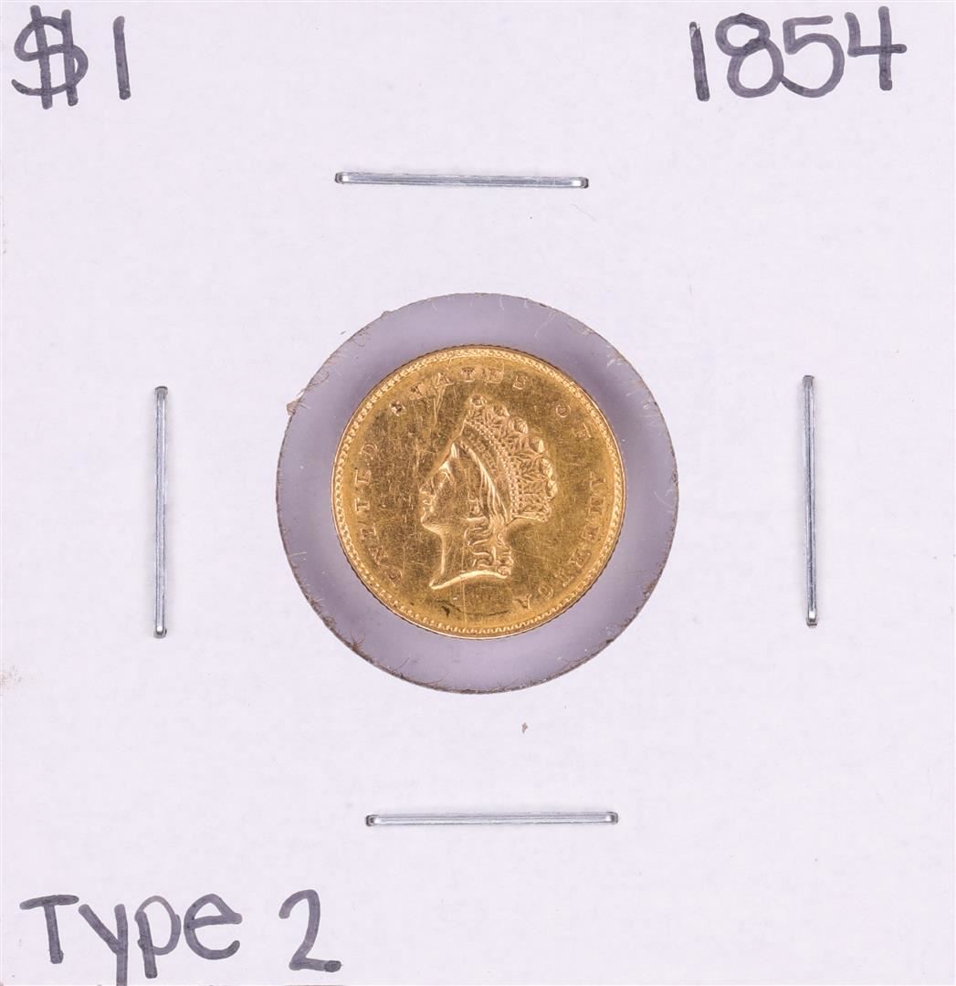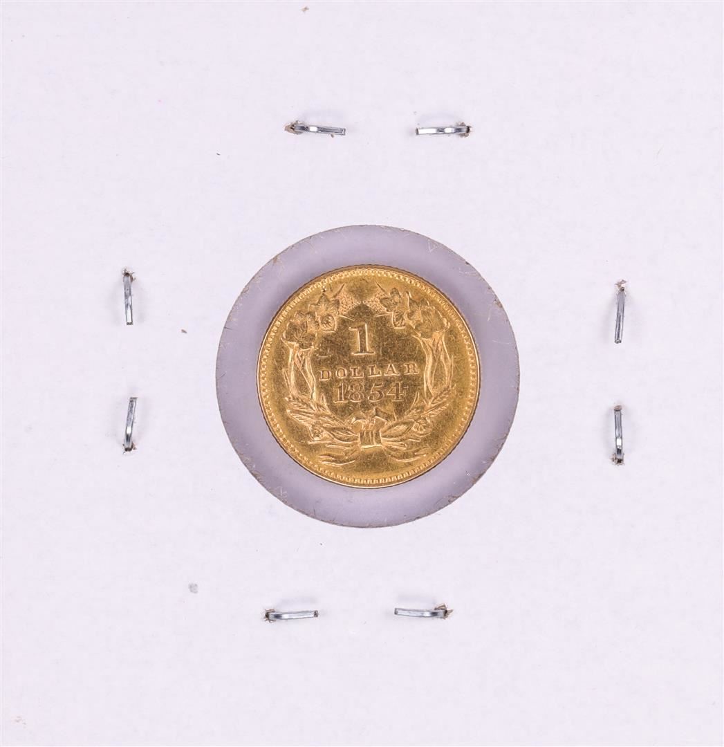 One 1854 Type 2 $1 Indian Princess Head Gold Dollar Coin.