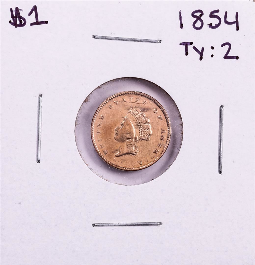 One 1854 Type 2 $1 Indian Princess Head Gold Dollar Coin.