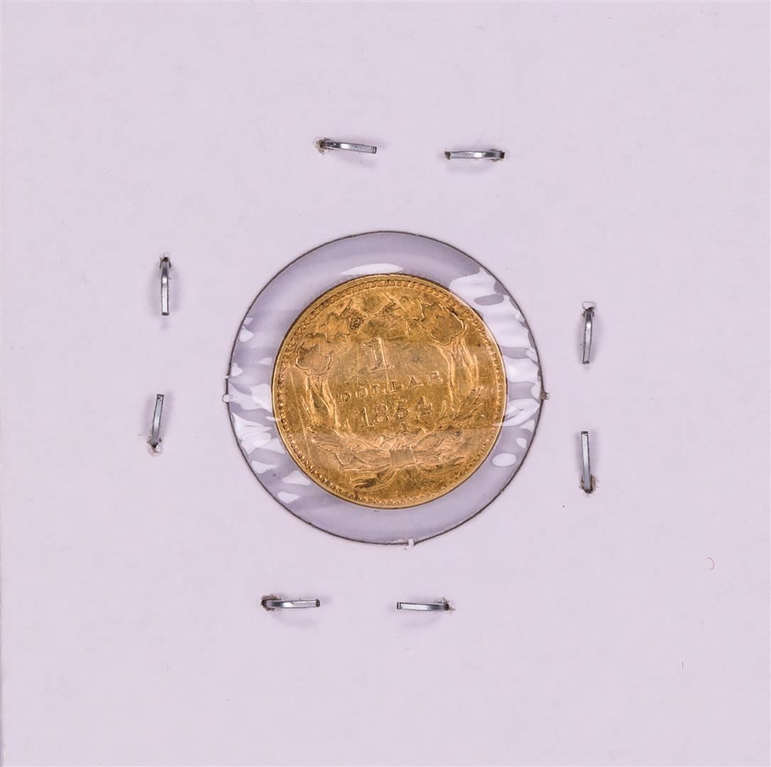 One 1854 Type 2 $1 Indian Princess Head Gold Dollar Coin.