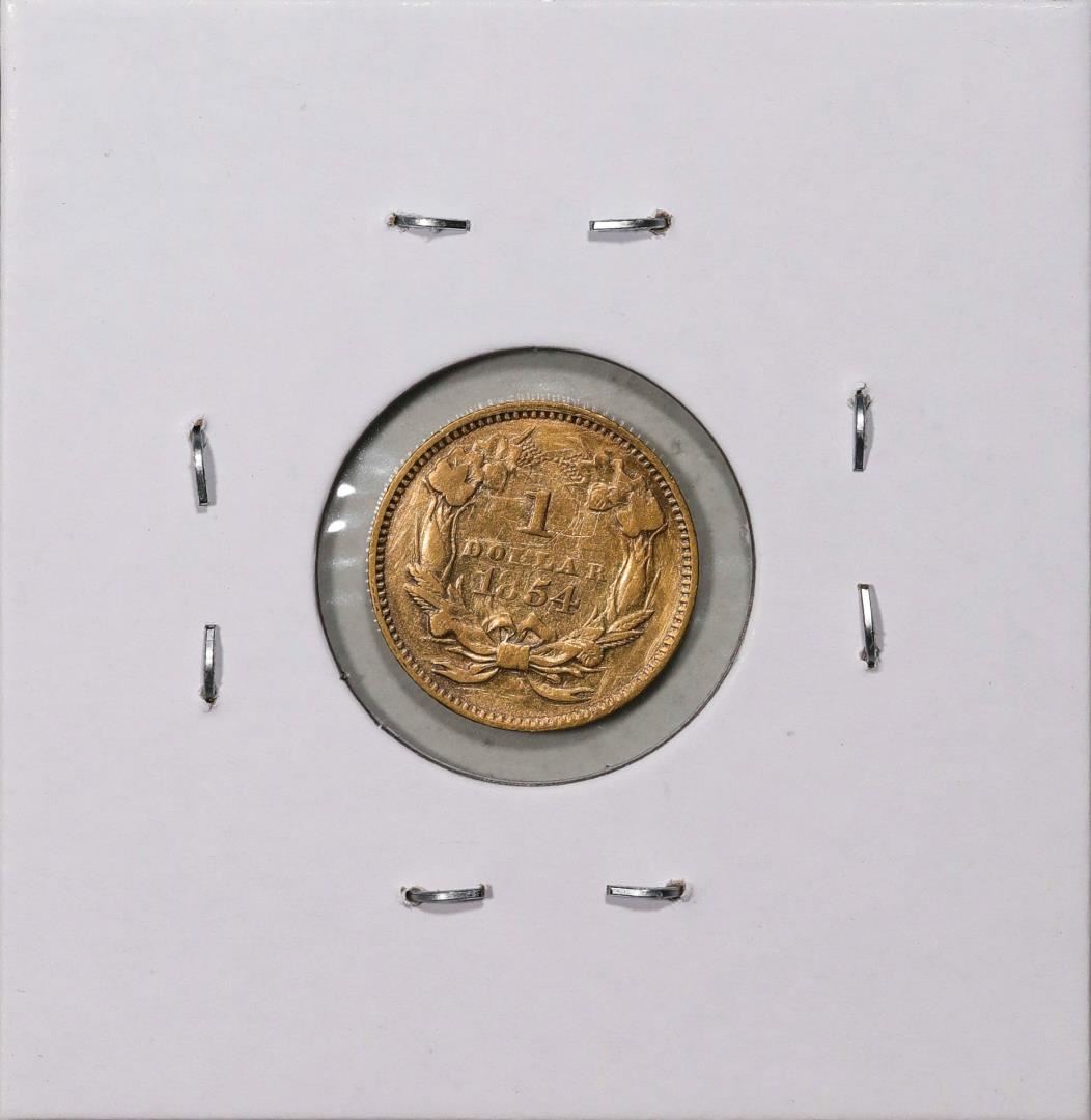 One 1854 Type 2 $1 Indian Princess Head Gold Dollar Coin.