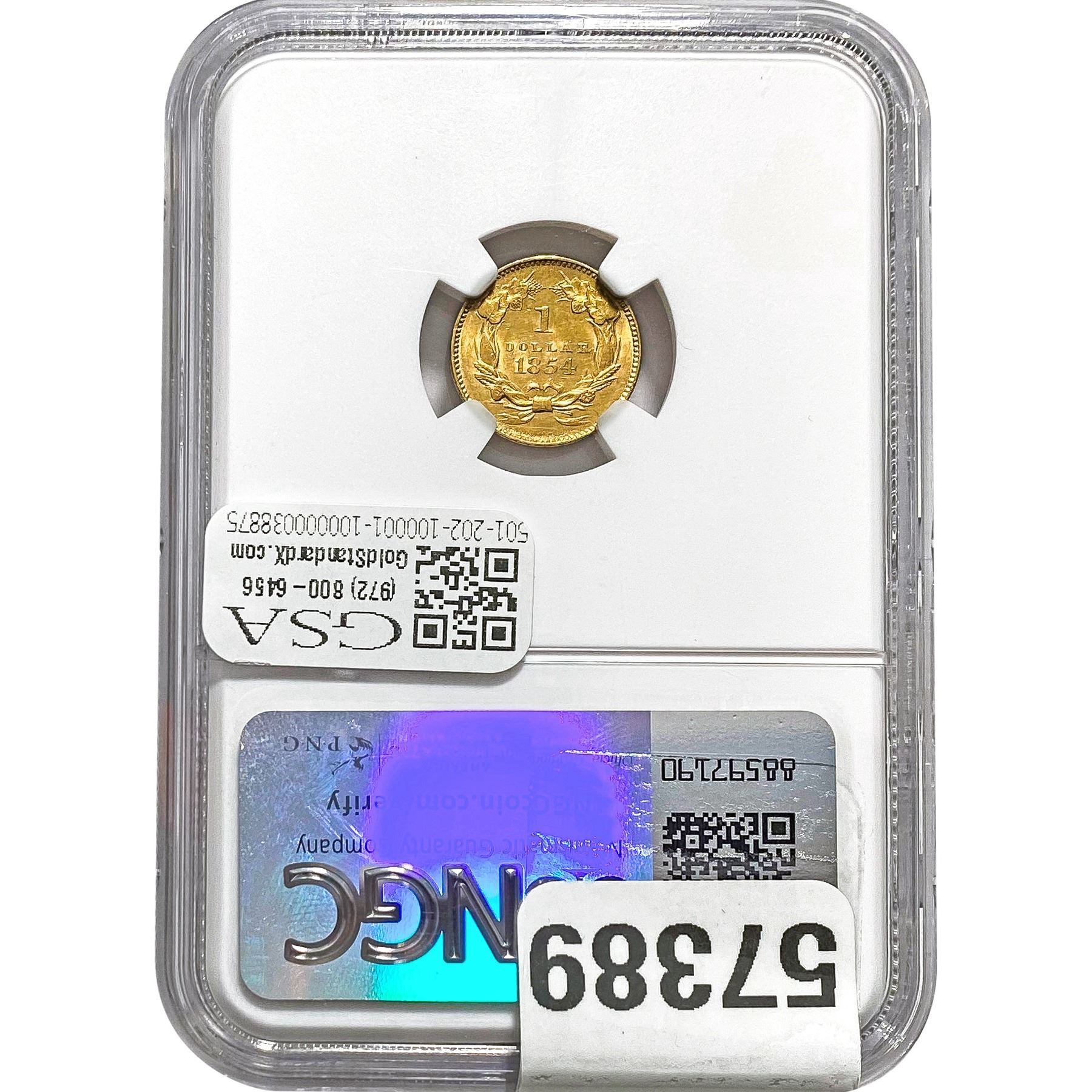 e. Coins sold referencing a third-party grading service are sold “AS IS” without any express or implied warranty, except for a guarantee by GSA that they are genuine. Removal or alteration of the holder, voids all of Bidder’s claims concerning that Product. Certain warranties may be available from the grading services and Bidders are referred to them for further details: Numismatic Guaranty Corporation (NGC), PO Box 4776, Sarasota, FL 34230, www.ngccoin.com/services/writtenguarantee.asp; Professional Coin Grading Services (PCGS), PO Box 9458, Newport Beach, CA 92658, www.pcgs.com/guarantee.html; ANACS, 6555 S. Kenton St., Ste. 303, Englewood, CO 80111; and Independent Coin Grading Co. (ICG), 7901 East Bellview, Ave., Suite 50, Englewood, CO 80111.