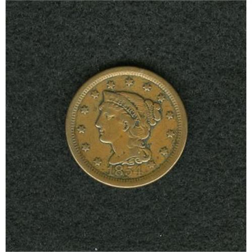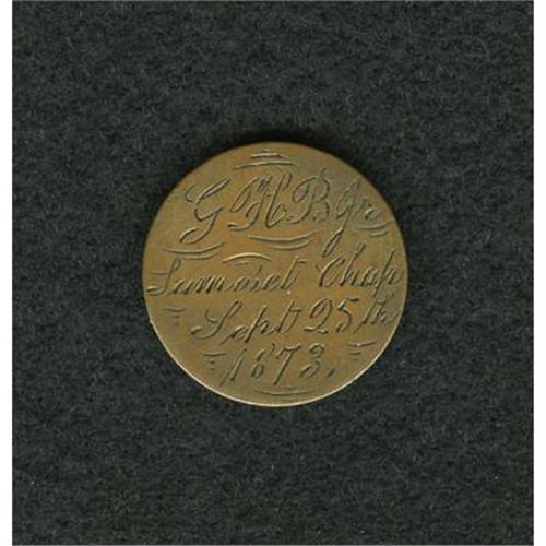 <B>1854 U.S. Large Cent Love Token.</B></I> This is an engraved U.S. large cent dated 1854 with "G.H.B. Jr. Lamonet Chap Sept 25th 1873" engraved on the reverse. This might have a Masonic connection, as Lamonet Chap might stand for the name of a Masonic lodge.<BR><BR><b>Shipping:</b> Coins & Currency (<a target="_blank" href="http://www.heritageauctions.com/common/shipping.php">view shipping information</a>)