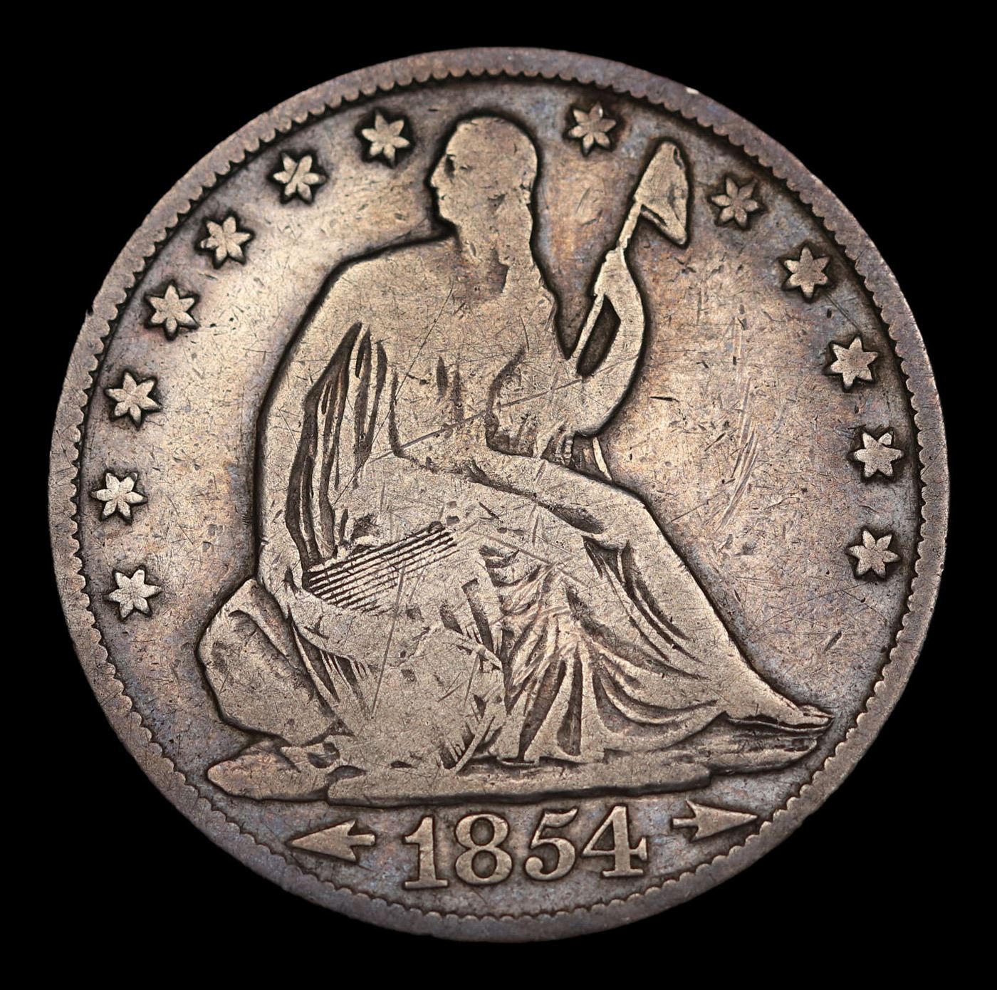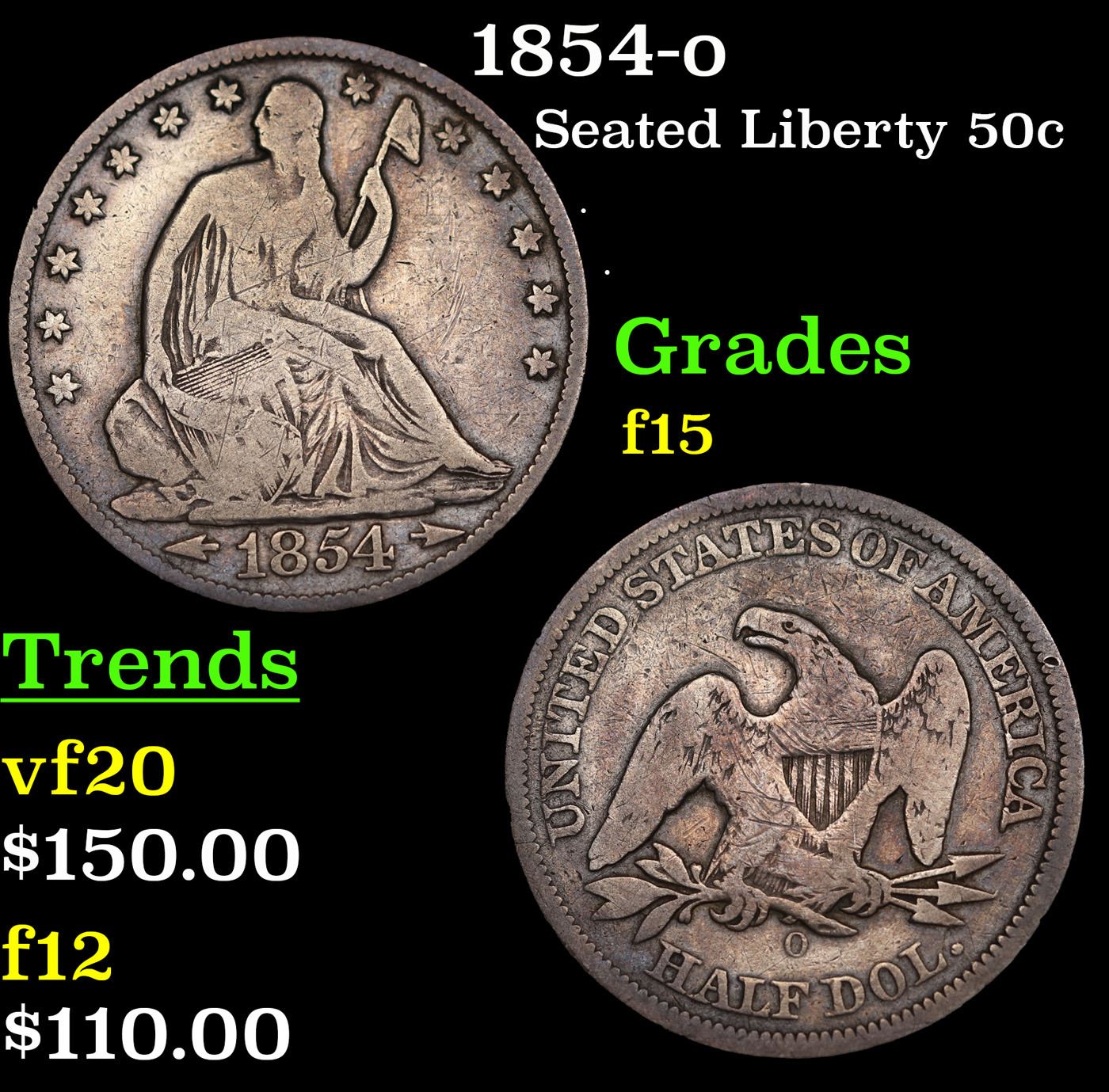 1854-o Seated Half Dollar 50c Grades f+.