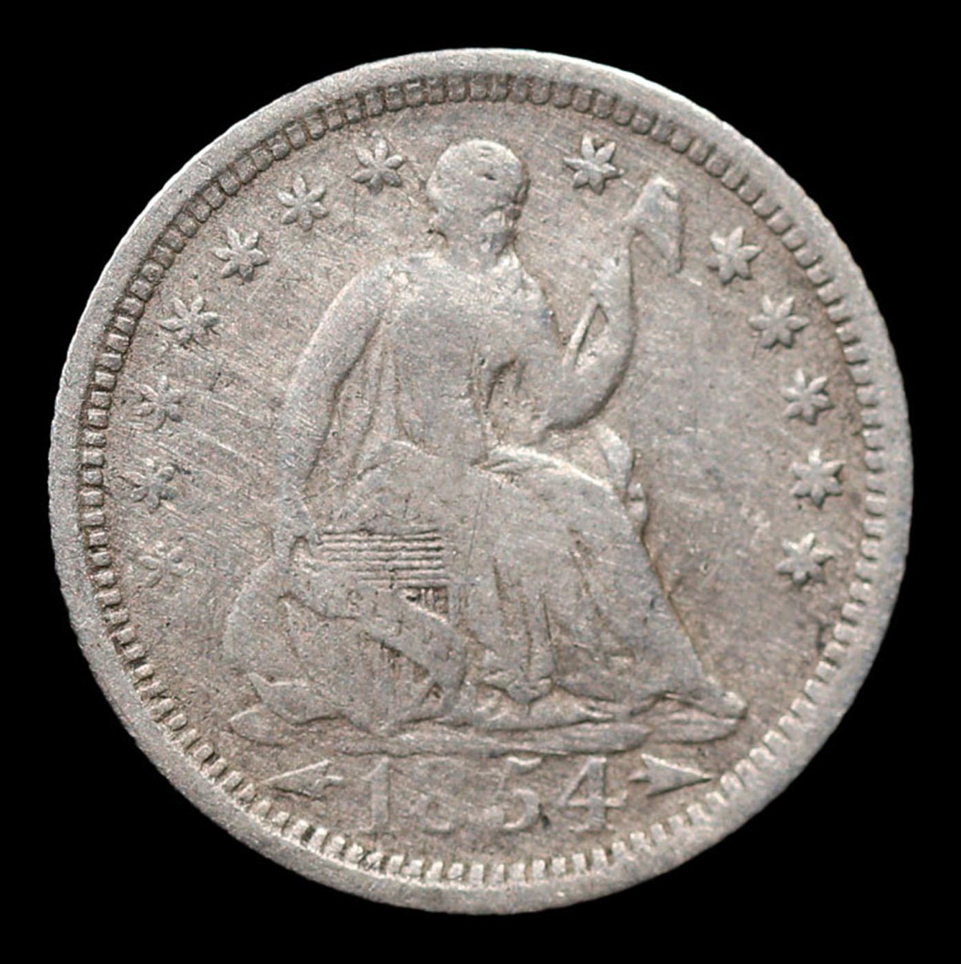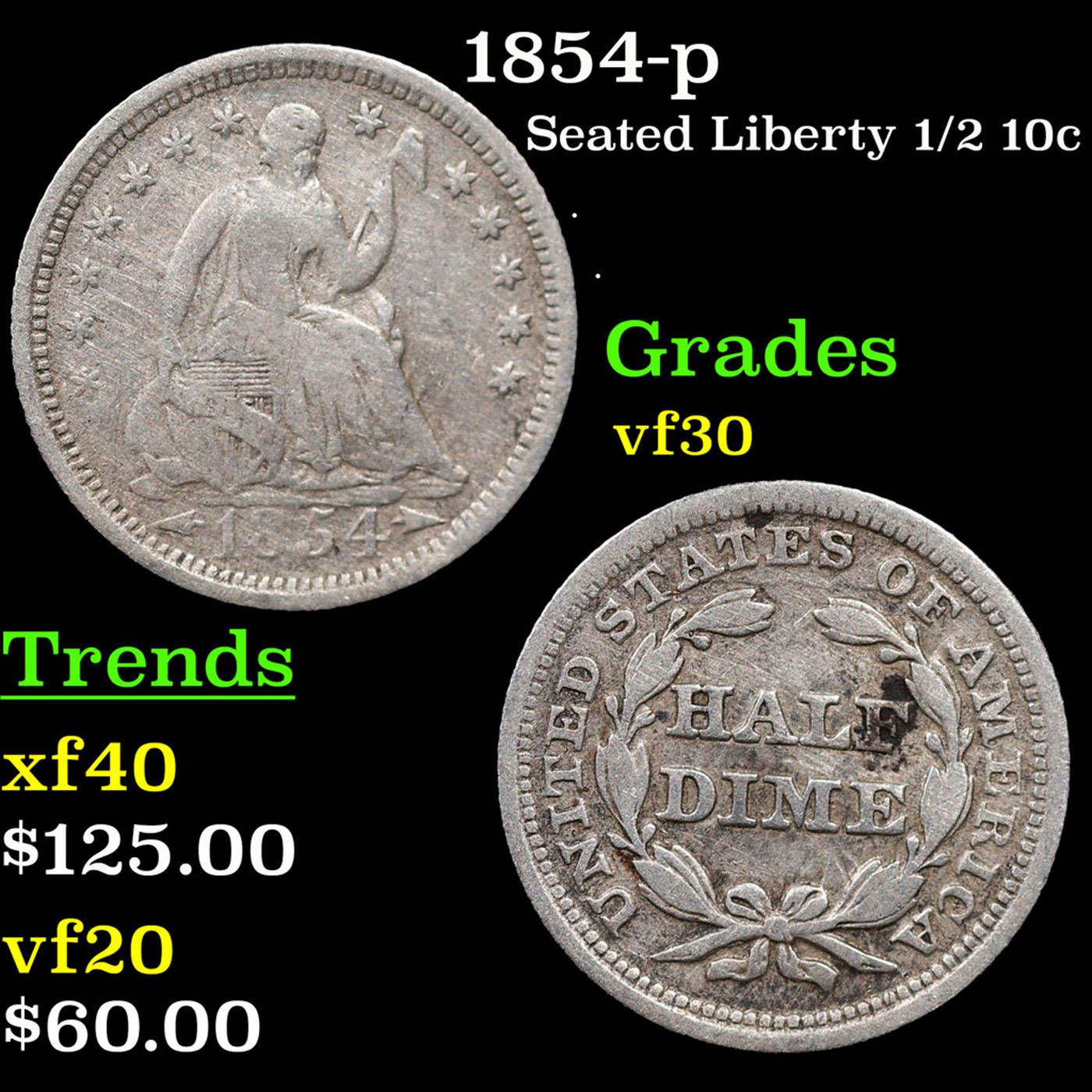 1854-p Seated Liberty Half Dime 1/2 10c Grades vf++.
