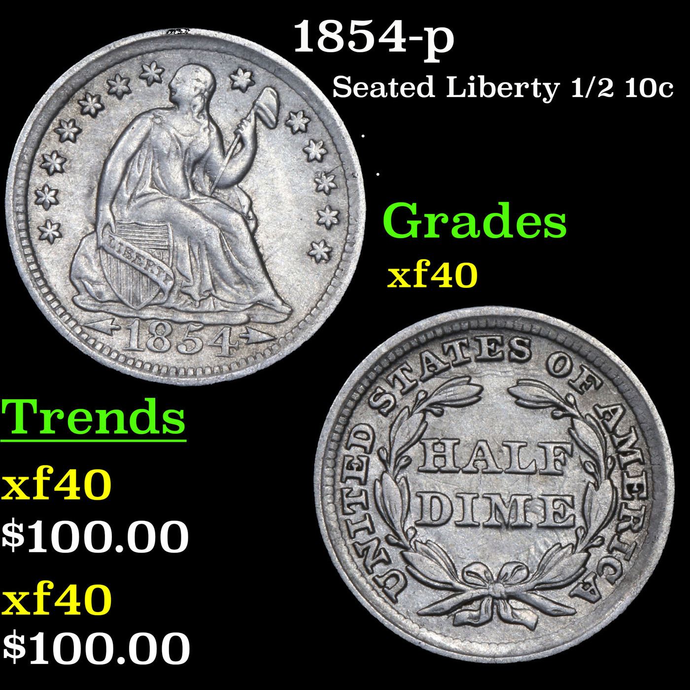 1854-p Seated Liberty Half Dime 1/2 10c Grades xf.