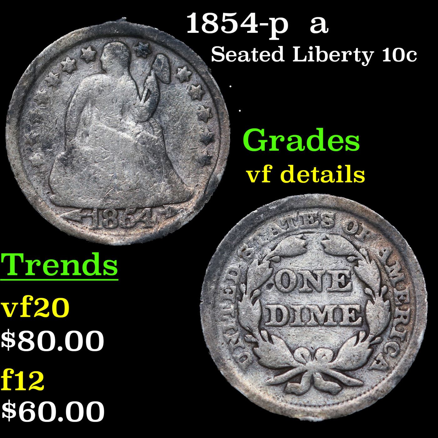 1854-p a Seated Liberty Dime 10c Grades vf details.
