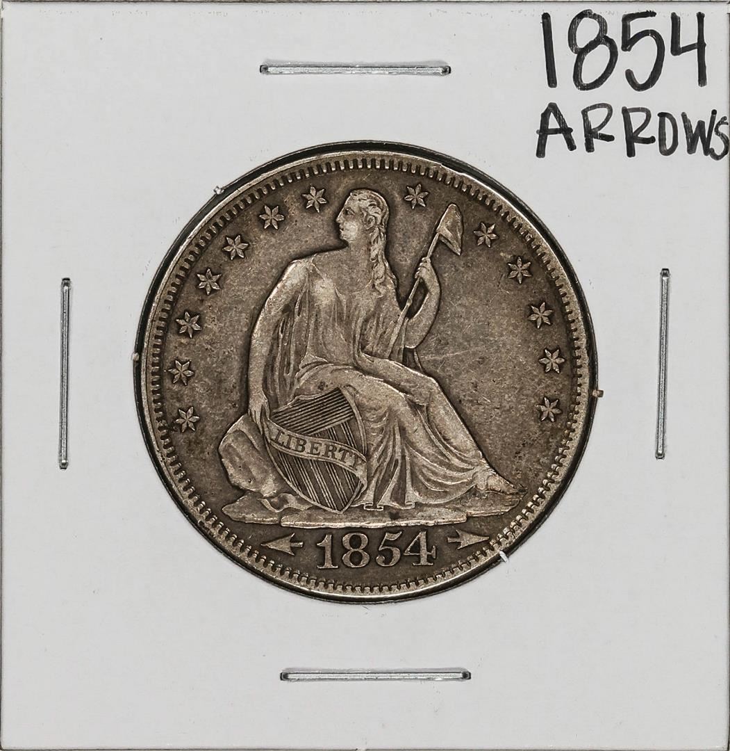 One 1854 w/Arrows Seated Liberty Half Dollar Coin.