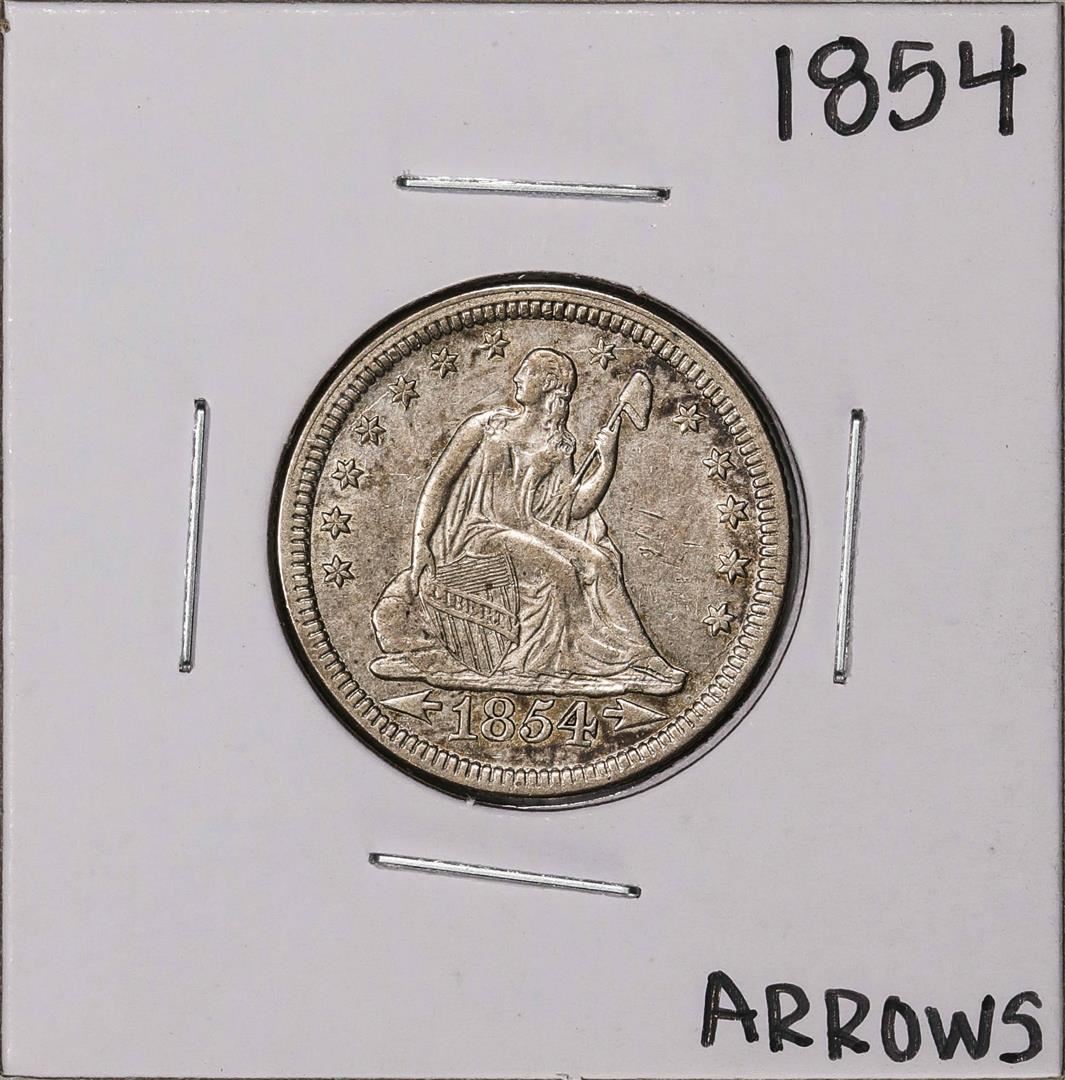 One 1854 w/Arrows Seated Liberty Quarter Coin.