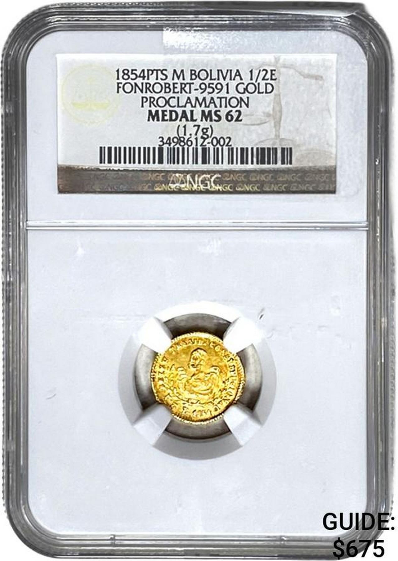 1854PTS M Bolvia 1/2E Fonrobert Gold Proclamation NGC MS62