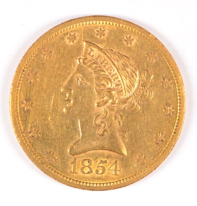1854S $10.00 LIBERTY GOLD, MS-61 VERY RARE DATE, NICE ORIGINAL COIN!!