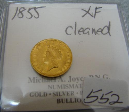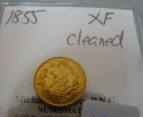 1855 $1.00 Type II Liberty Head Gold Coin XF Cleaned