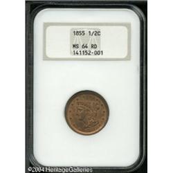 1855 1/2 C MS64 Red NGC. B-1, C-1, R.1. Minutely m 1855 1/2 C MS64 Red NGC.