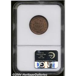 <B>1855<1/2 C> MS64 Red NGC.</B></I> B-1, C-1, R.1. A lustrous bright orange near-Gem. Crisply struck except for the right side denticles, and a few widely distributed toning flecks do not distress. Just 56,500 pieces were struck, and full Red examples are scarce. <BR><BR><B>Important notice:</B> Heritage usually auctions material at the rate of 200-250 lots per hour. On some occasions eBay Live bid software or the Internet may not be able to keep up with the pace of the auction. We recommend placing a realistic absentee bid now as insurance to avoid disappointment. Occasionally the auctioneer may eliminate or reject an eBay Live bid, and the auctioneer may also reopen a lot after the close of the eBay live bidding (usually because we missed an audience bid), and may reject your bid even if it shows you as the winning bidder. By bidding via eBay Live, you agree that Heritage may award the lot to another bidder at its sole discretion under the circumstances described above or any other reasonable circumstances. Since eBay bids are not shown to us until we open the lot on the floor, we treat those bids just like floor bids. In most cases the floor responds before the eBay bid is presented to us, due to Internet lag time, so for consistency we have made it a policy that floor bids are always considered first over tie eBay live bids. Also please note that all Heritage lots purchased through eBay Live carry a 20% Buyer's Premium. Please make sure you read the Terms and Conditions before you bid.