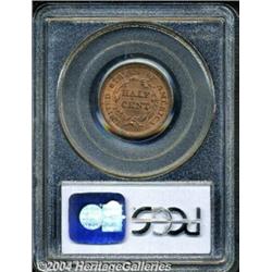 <table><tr><td><table><tr><td>1855 1/2 C MS64 Red PCGS. B-1, C-1, R.1. A radiant deep orange-red near-Gem with a couple of unimportant contact marks and an occasional hint of carbon. Crisply struck aside from portions of the right side denticles. <BR><BR><B>Important notice:</B> Heritage usually auctions material at the rate of 200-250 lots per hour. On some occasions eBay Live bid software or the Internet may not be able to keep up with the pace of the auction. We recommend placing a realistic absentee bid now as insurance to avoid disappointment. Occasionally the auctioneer may eliminate or reject an eBay Live bid, and the auctioneer may also reopen a lot after the close of the eBay live bidding (usually because we missed an audience bid), and may reject your bid even if it shows you as the winning bidder. By bidding via eBay Live, you agree that Heritage may award the lot to another bidder at its sole discretion under the circumstances described above or any other reasonable circumstances. Since eBay bids are not shown to us until we open the lot on the floor, we treat those bids just like floor bids. In most cases the floor responds before the eBay bid is presented to us, due to Internet lag time, so for consistency we have made it a policy that floor bids are always considered first over tie eBay live bids. Also please note that all Heritage lots purchased through eBay Live carry a 20% Buyer's Premium. Please make sure you read the Terms and Conditions before you bid. <BR><BR><B>IMPORTANT ANNOUNCEMENT ABOUT RESERVES:</B> Heritage now divulges all reserves on its web site 7 days before every auction. If you want to know whether the reserve on this lot has been met, and if not, what the reserve amount is, please visit this lot page on the HeritageCoin.com web site, or email: bid@HeritageGalleries.com </span></font></td></tr></table></td></tr></table>