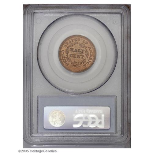<B>1855<1/2 C> MS64 Red PCGS.</B></I> B-1, C-1, R.1. This brick-red near-Gem is sharply struck aside from some of the denticles and star centrils. There are no relevant abrasions, but both sides show moderate scattered carbon that prevents a higher grade assessment from PCGS.