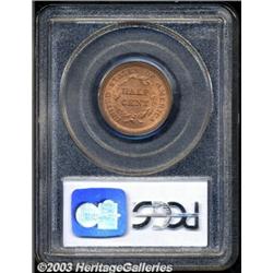 1855 1/2 C MS64 Red PCGS. B-1, C-1, R.1. This brick-red near-Gem is sharply struck aside from the final star. There are no relevant abrasions, and the lower left obverse has a couple of tiny toning freckles. A curly lintmark (as made) near the twelfth star provides a pedigree marker. Important notice: Heritage usually auctions material at the rate of 200-250 lots per hour. On some occasions eBay Live bid software or the Internet may not be able to keep up with the pace of the auction. We recommend placing a realistic absentee bid now as insurance to avoid disappointment. Occasionally the auctioneer may eliminate or reject an eBay Live bid, and the auctioneer may also reopen a lot after the close of the eBay live bidding (usually because we missed an audience bid), and may reject your bid even if it shows you as the winning bidder. By bidding via eBay Live, you agree that Heritage may award the lot to another bidder at its sole discretion under the circumstances described above or any other reasonable circumstances. Also please note that all Heritage lots purchased through eBay Live carry a 20% Buyer's Premium. Please make sure you read the Terms and Conditions before you bid.