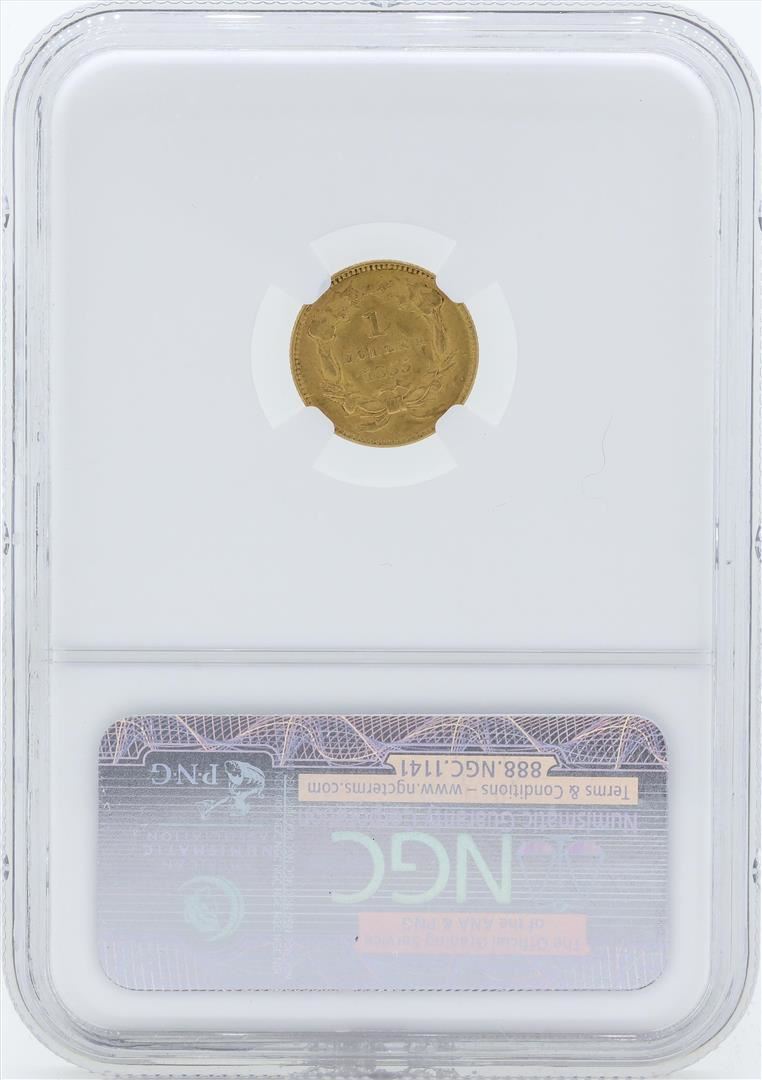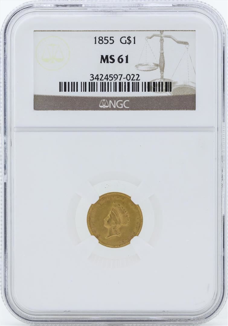 One 1855 $1 Gold Dollar Type 2 Coin NGC MS61. NGC Certified.