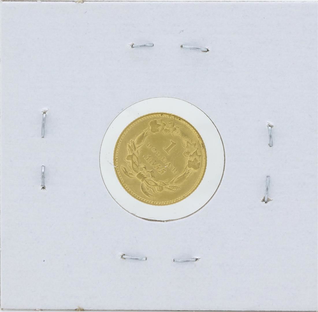 One 1855 $1 Gold Dollar Type 2 Coin.