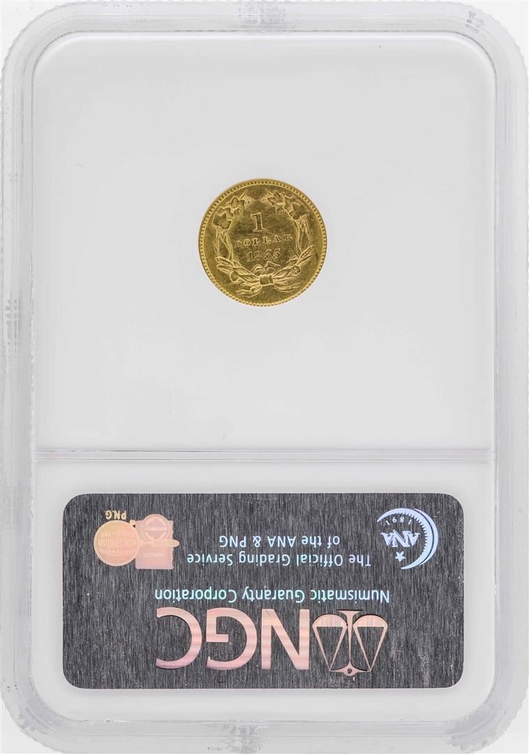 One 1855 $1 Indian Princess Head Gold Dollar Coin NGC AU58. NGC Certified.