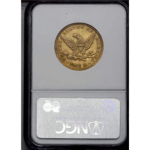 <B>1855<$10> AU53 NGC.</B></I> Glimmers of peach-tinged luster dominate the borders of this suitably struck No Motto example. Small marks are distributed but never distract. <BR><BR><B>Important notice:</B> Heritage usually auctions material at the rate of 200-250 lots per hour. On some occasions eBay Live bid software or the Internet may not be able to keep up with the pace of the auction. We recommend placing a realistic absentee bid now as insurance to avoid disappointment. Occasionally the auctioneer may eliminate or reject an eBay Live bid, and the auctioneer may also reopen a lot after the close of the eBay live bidding (usually because we missed an audience bid), and may reject your bid even if it shows you as the winning bidder. By bidding via eBay Live, you agree that Heritage may award the lot to another bidder at its sole discretion under the circumstances described above or any other reasonable circumstances. Since eBay bids are not shown to us until we open the lot on the floor, we treat those bids just like floor bids. In most cases the floor responds before the eBay bid is presented to us, due to Internet lag time, so for consistency we have made it a policy that floor bids are always considered first over tie eBay live bids. Also please note that all Heritage lots purchased through eBay Live carry a 20% Buyer's Premium. Please make sure you read the Terms and Conditions before you bid. This lot is being auctioned in conjunction with a live floor auction by Heritage Galleries & Auctioneers. All final auction and invoice information will be supplied by Heritage Galleries & Auctioneers, and all other information should be considered preliminary. Lot:3941 <BR><BR><B>Winning Notification and Billing:</B> After the FINAL session in this auction is complete, Heritage will send e-mail and snail mail invoices. This process normally takes several days. All final auction and invoice information will be supplied by Heritage Galleries & Auctioneers, and all other information should be considered preliminary. <BR><BR>This auction will be conducted on a live auction floor and over the Internet through eBay Live. If you choose to place an absentee bid, please take a moment to <font color='#0000ff'><u><a href='http://pages.ebay.com/liveauctions/help/before/laabsentee.html'>learn how eBay Live absentee bidding works</a></u></font><font color='#000000'>