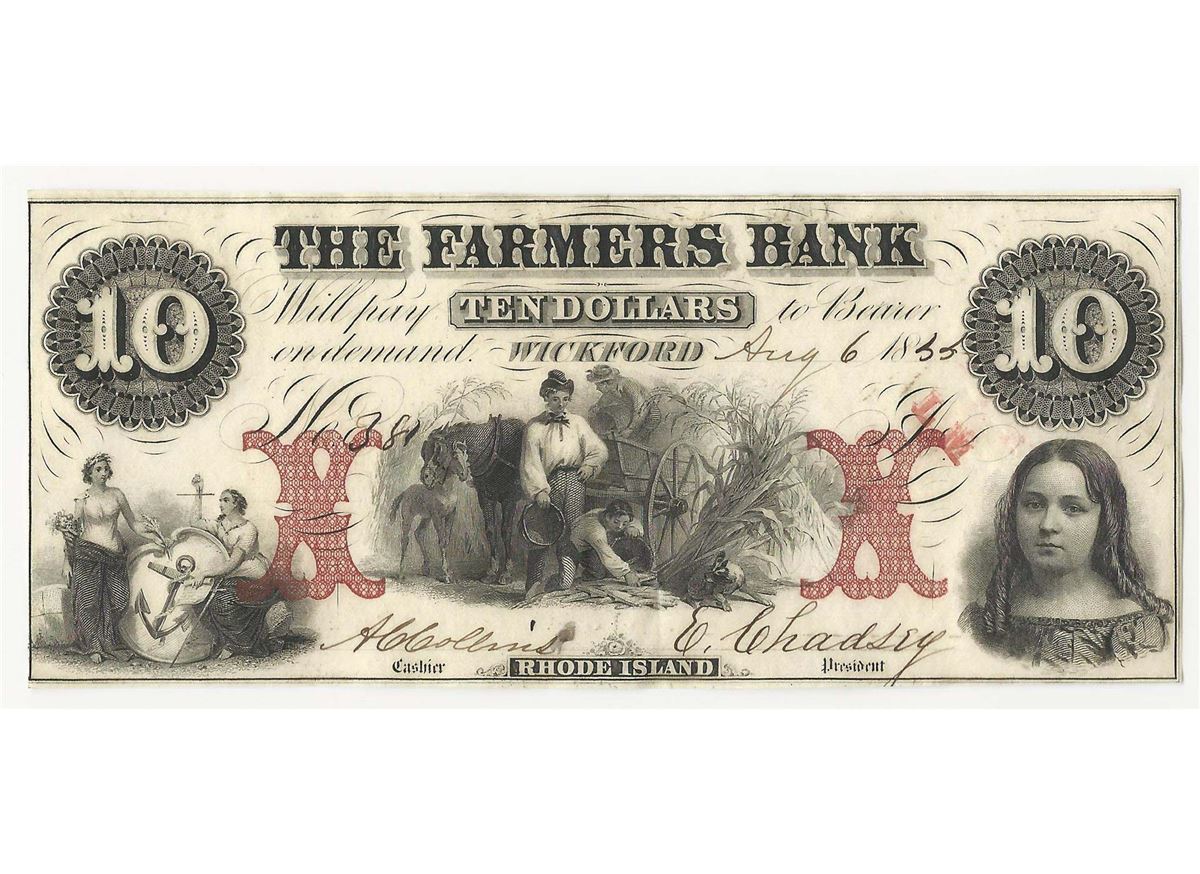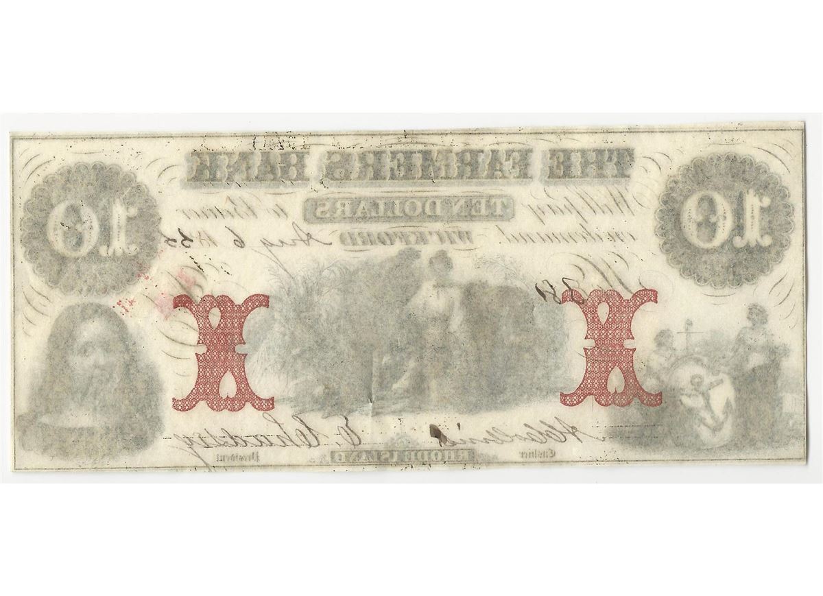 One 1855 $10 The Farmers Bank Obsolete Note.