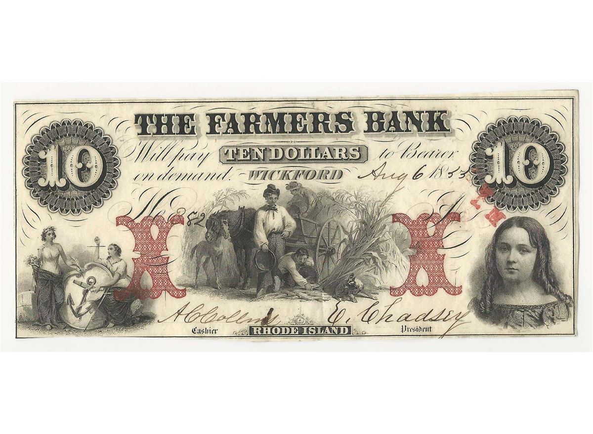 One 1855 $10 The Farmers Bank Obsolete Note.
