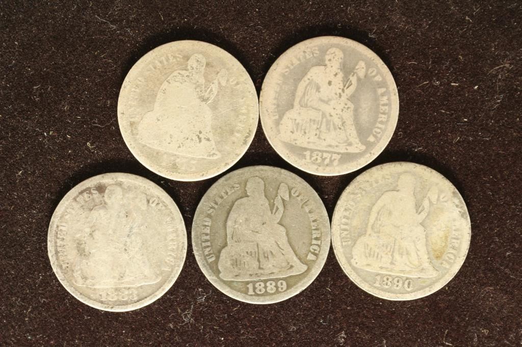 1855, 1877, 1883, 1889 & 1890 SEATED LIBERTY DIMES