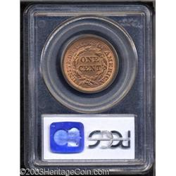 <table><tr><td><TABLE cellSpacing=0 cellPadding=0 width="100%" bgColor=#000000 border=0><TBODY> <TR><TD width="100%"><TABLE cellSpacing=1 cellPadding=3 width="100%" border=0><TBODY><TR><TD width="100%" bgColor=#79735c><FONT face=arial color=#ffffff size=3><B>Description</B> </FONT></TD></TR><TR><TD width="100%" bgColor=#ffffff><FONT face=arial size=2><B>1855 1C Upright 5s MS64 Red PCGS.</B></I> N-4, R.1. A pair of tiny die lumps (as made) below Liberty's ear confirms the die marriage. This suitably struck near-Gem has good luster and luminous orange color. An occasional carbon fleck is all that precludes a higher grade. </FONT></TD></TR></TBODY></TABLE></TD></TR></TBODY></TABLE><BR><A name=PricesRealized></A><TABLE cellSpacing=0 cellPadding=0 width="100%" bgColor=#000000 border=0><TBODY><TR><TD width="100%"><TABLE cellSpacing=1 cellPadding=3 width="100%" border=0><TBODY><TR><TD width="100%" bgColor=#79735c><A name=PR><FONT face=arial color=#ffffff size=3><B>Previous Prices from Heritage Auctions</B> </FONT></A></TD></TR><TR><TD bgColor=#f6f6ed><TABLE cellSpacing=0 cellPadding=0 width="100%" border=1><TBODY><TR><TD align=middle width="33%"><B>Date</B></TD><TD align=middle width="33%"><B>Service</B></TD><TD align=middle width="33%"><B>Price</B></TD></TR><TR bgColor=whitesmoke><TD width="33%"><B>07/29/2003</B></TD><TD width="33%">PCGS</TD><TD width="33%">$977.50</TD></TR><TR bgColor=whitesmoke><TD width="33%"><B>03/21/1998</B></TD><TD width="33%">PCGS</TD><TD width="33%">$1,150.00</TD></TR><TR bgColor=whitesmoke><TD width="33%"><B>03/04/1994</B></TD><TD width="33%">NGC</TD><TD width="33%">$742.50</TD></TR></TBODY></TABLE></TD></TR><TR><TD bgColor=#ffffff><FONT face=arial size=1 ?>PLEASE NOTE: All prices realized reflect the final hammer price PLUS the buyer's premium in auctions that charge a buyer's premium. Each item has a notation at the top of the listing indicating whether that lot included a buyer's premium. Example: A item that sells with a final hammer price of $100 and a 20% buyer's premium will display with a price realized of $120. All information listed is intended to be as accurate as possible, but errors are possible. Please use this guide carefully and inform us of any inaccuracies. </FONT></TD></TR></TBODY></TABLE></TD></TR></TBODY></TABLE><BR><TABLE cellSpacing=0 cellPadding=0 width="100%" bgColor=#000000 border=0><TBODY><TR><TD width="100%"><TABLE cellSpacing=1 cellPadding=3 width="100%" border=0><TBODY><TR><TD width="100%" bgColor=#79735c colSpan=6><FONT face=arial color=#ffffff size=3><B>Price Guide*</B> </FONT></TD></TR><TR bgColor=#f6f6ed><TD align=middle><B>Grade</B> </TD><TD align=middle><B>Coin World<BR>(Trends)</B> </TD><TD align=middle><B>Numismedia<BR>Retail</B> </TD><TD align=middle><B>Numismedia<BR>Wholesale</B> </TD><TD align=middle><B>Coin<BR>Universe</B> </TD><TD align=middle><B>Heritage<BR>Value Index</B> </TD></TR><TR bgColor=#ffffff><TD align=middle>63</TD><TD align=right>---</TD><TD align=right>---</TD><TD align=right>---</TD><TD align=right>$600.00</TD><TD align=right>$417.00</TD></TR><TR style="FONT-WEIGHT: bold" bgColor=#cccfdd><TD align=middle>64</TD><TD align=right>---</TD><TD align=right>---</TD><TD align=right>$820.00</TD><TD align=right>$1,300.00</TD><TD align=right>$1,052.92</TD></TR><TR bgColor=#ffffff><TD align=middle>65</TD><TD align=right>---</TD><TD align=right>---</TD><TD align=right>$2,375.00</TD><TD align=right>$3,600.00</TD><TD align=right>$2,335.33</TD></TR><TR bgColor=#ffffff><TD colSpan=6><FONT size=1>*All information listed is intended to be as accurate as possible, but errors are possible. No item may be returned or refused based on this information which is provided as a service to our customers. You should contact each pricing source directly to determine the accuracy of this information. </FONT></TD></TR></TBODY></TABLE></TD></TR></TBODY></TABLE><BR><TABLE cellSpacing=0 cellPadding=0 width="100%" bgColor=#000000 border=0><TBODY><TR><TD width="100%"><TABLE cellSpacing=1 cellPadding=3 width="100%" border=0><TBODY><TR><TD width="100%" bgColor=#79735c><FONT face=arial color=#ffffff size=3><B>Population Guide</B> </FONT></TD></TR><TR bgColor=#ffffff><TD align=middle><!-- Begin Output of Population Grid--><TABLE cellSpacing=0 cellPadding=0 width="100%" border=0><TBODY><TR><TD vAlign=center><TABLE cellSpacing=0 width="100%" border=1 cellsadding="3"><TBODY><TR><TD vAlign=center><TABLE cellSpacing=0 cellPadding=3 width="100%" border=1><TBODY><TR><TD vAlign=center align=middle bgColor=#f0f1e8 colSpan=2 <CENTER><FONT face=Arial size=2><B>PCGS Pop </B></FONT><CENTER></CENTER></TD><TD vAlign=center align=middle bgColor=#f0f1e8 colSpan=2><CENTER><FONT face=Arial size=2><B>NGC Pop</B></CENTER></FONT></TD></TR><TR><TD vAlign=center><FONT face=Arial size=2>(64)</FONT> </TD><TD vAlign=center align=right><FONT face=Arial size=2>56</FONT> </TD><TD vAlign=center><FONT face=Arial size=2>(64)</FONT> </TD><TD vAlign=center align=right><FONT face=Arial size=2>51</FONT> </TD></TR><TR><TD vAlign=center><FONT face=Arial size=2>(>64)</FONT> </TD><TD vAlign=center align=right><FONT face=Arial size=2>86</FONT> </TD><TD vAlign=center><FONT face=Arial size=2>(>64)</FONT> </TD><TD vAlign=center align=right><FONT face=Arial size=2>41</FONT> </TD></TR></TBODY></TABLE></TD></TR></TBODY></TABLE></TD></TR></TBODY></TABLE><!-- End Output of Population Grid--></TD></TR></TBODY></TABLE></TD></TR></TBODY></TABLE><BR><TABLE cellSpacing=0 cellPadding=0 width="100%" bgColor=#000000 border=0><TBODY><TR> Important notice: Heritage usually auctions material at the rate of 200-250 lots per hour. On some occasions eBay Live bid software or the Internet may not be able to keep up with the pace of the auction. We recommend placing a realistic absentee bid now as insurance to avoid disappointment. Occasionally the auctioneer may eliminate or reject an eBay Live bid, and the auctioneer may also reopen a lot after the close of the eBay live bidding (usually because we missed an audie