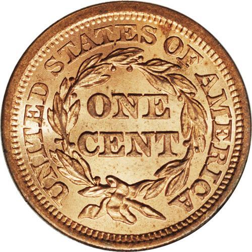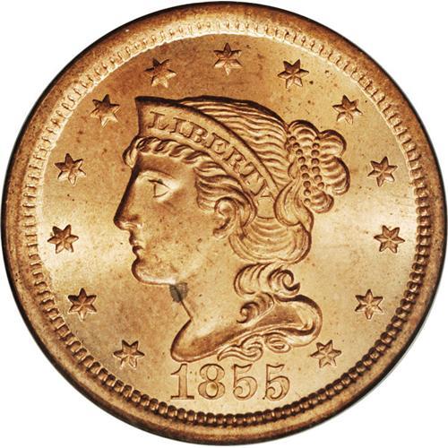 1855 1C Upright 5s MS66 Red PCGS. N-4, R.1. Pumpkin-go