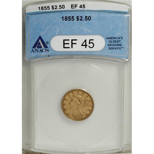 1855 $2 1/2 XF45 ANACS. NGC Census: (2/269). PCGS