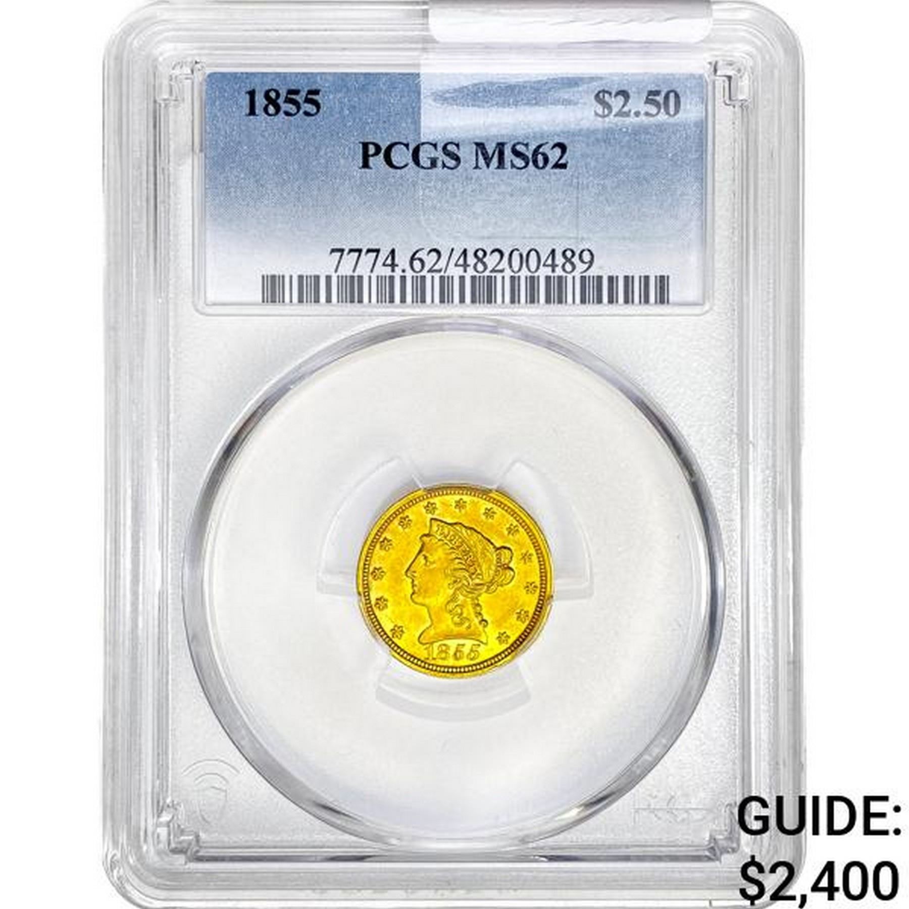 1855 $2.50 Gold Quarter Eagle PCGS MS62