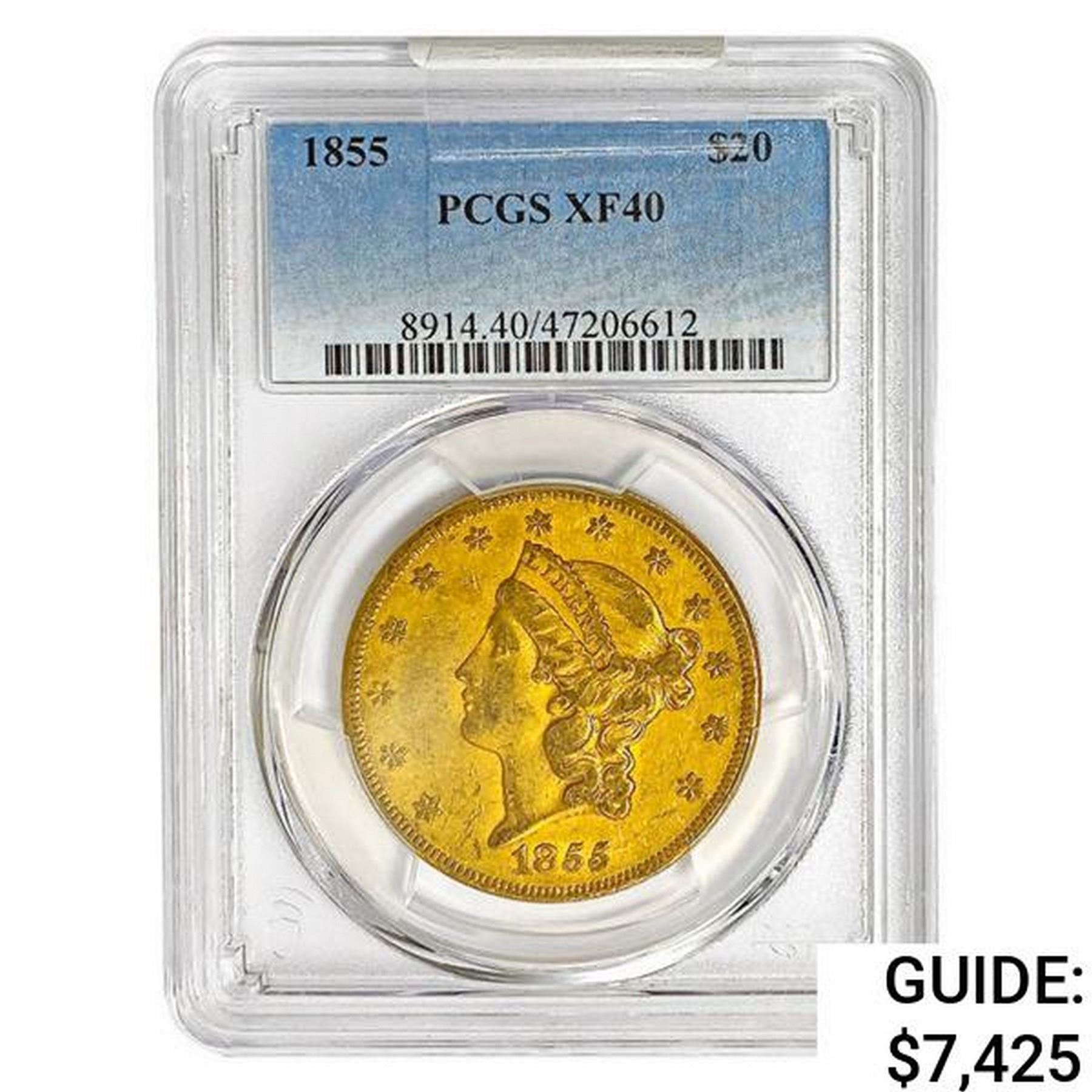 1855 $20 Gold Double Eagle PCGS XF40