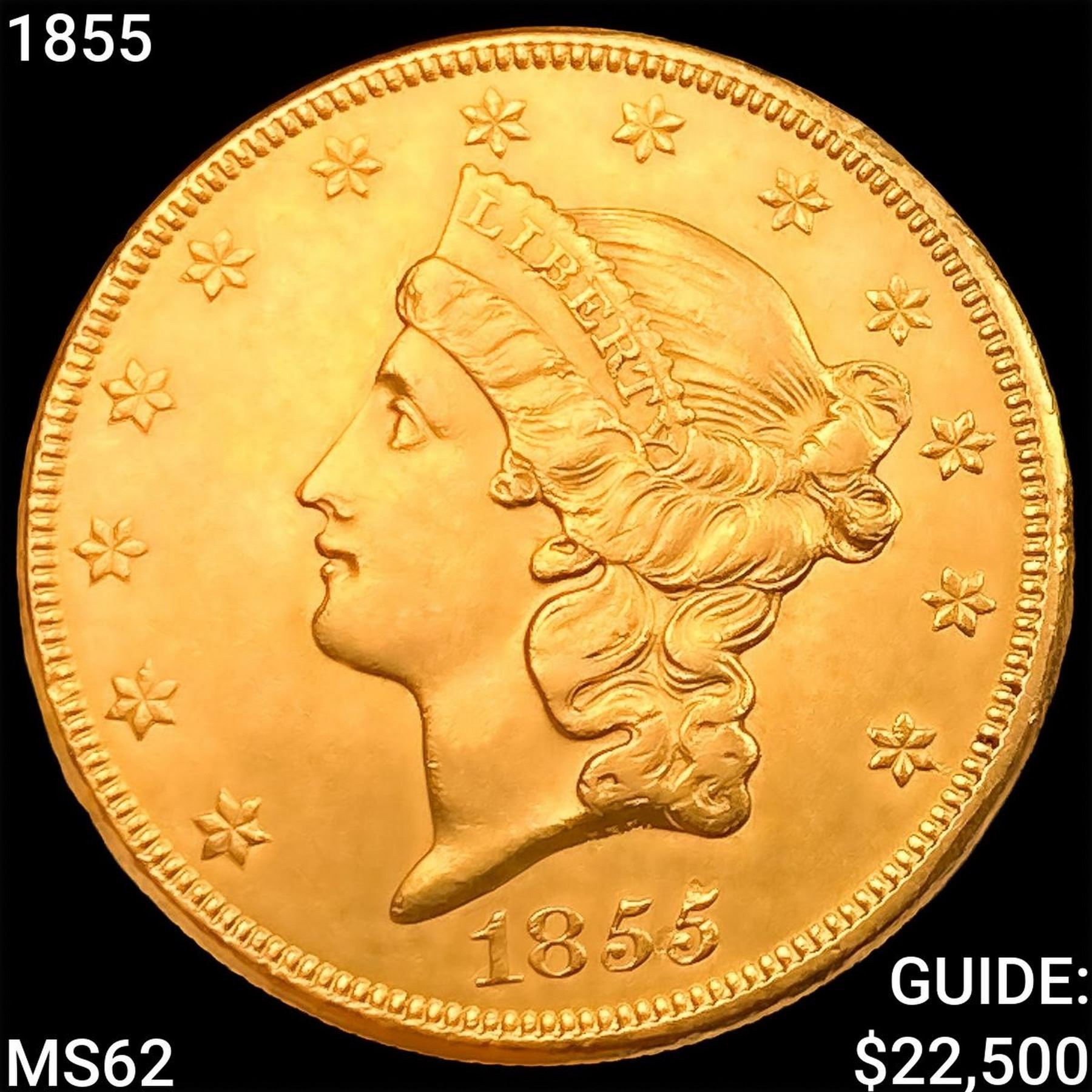 1855 $20 Gold Double Eagle UNCIRCULATED