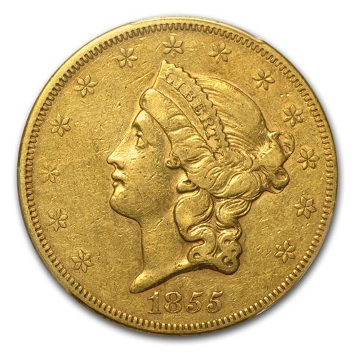 1855 $20 Gold Liberty Double Eagle - XF-40 PCGS **|**|** 1855 $20 Gold Liberty Double Eagle - XF-40 PCGS ; MSRP: $4200