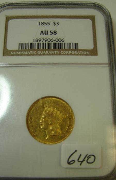 1855 $3.00 Indian Princess Gold Coin NGC AU58