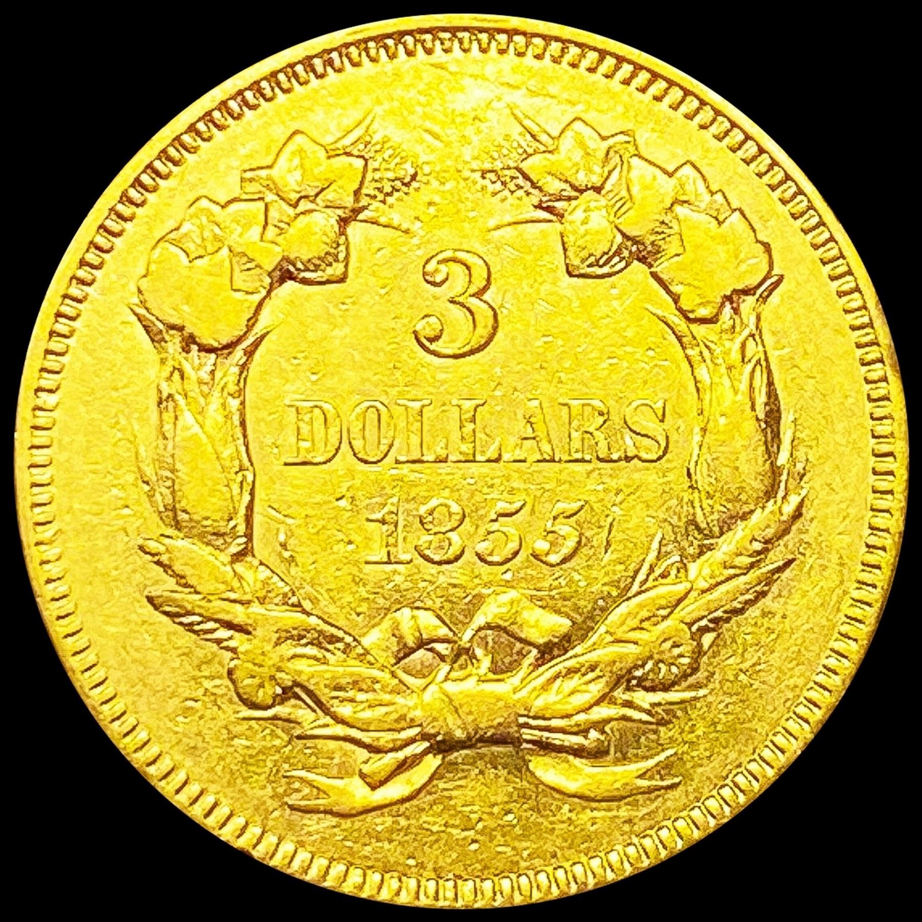 1855 $3 Gold Piece ABOUT UNCIRCULATED