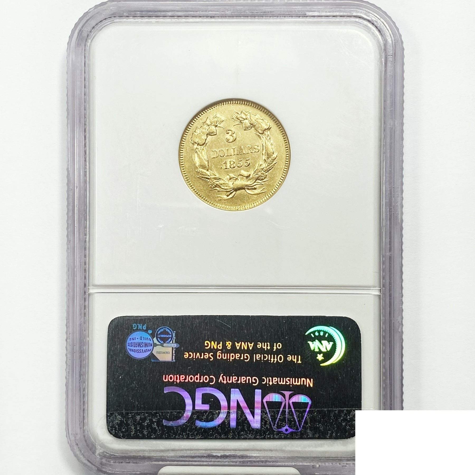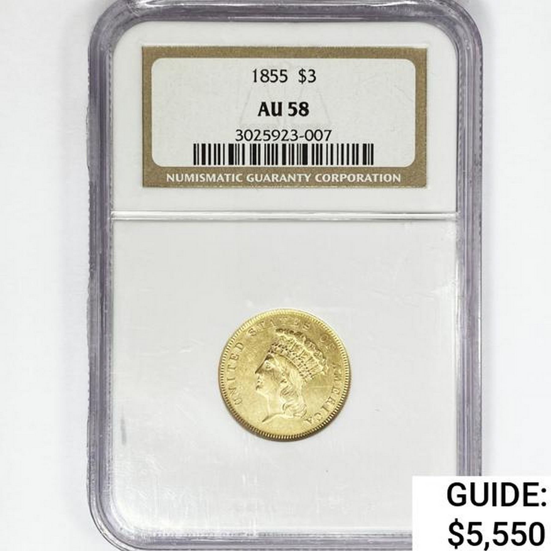 1855 $3 Gold Piece NGC AU58