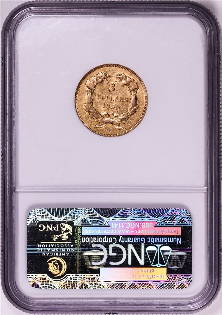 One 1855 $3 Indian Princess Head Gold Coin NGC XF40. NGC Certified.