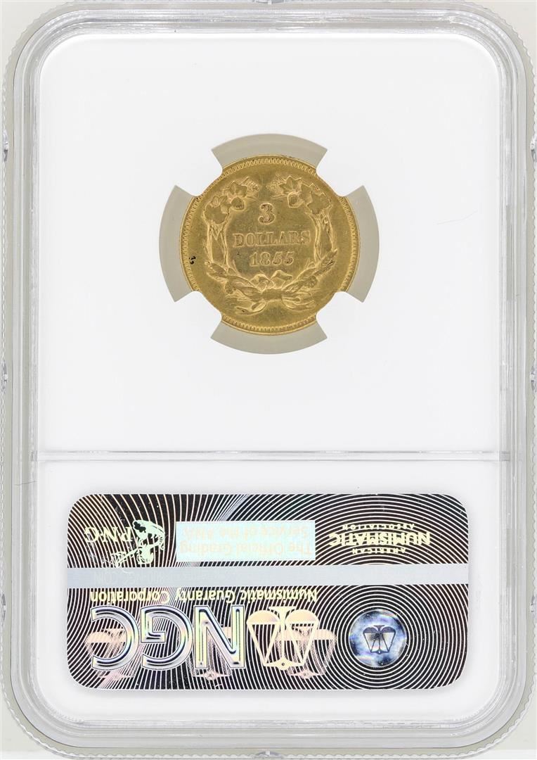 One 1855 $3 Indian Princess Head Gold Coin NGC XF45. NGC Certified.