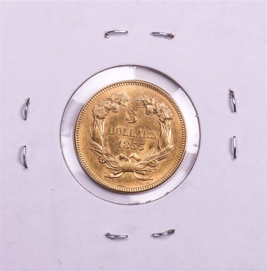 One 1855 $3 Indian Princess Head Gold Coin.