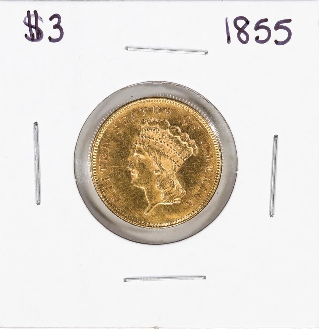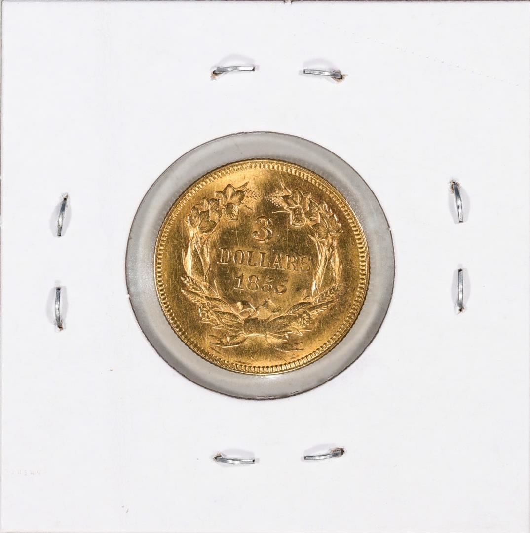 One 1855 $3 Indian Princess Head Gold Coin.