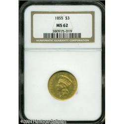 1855 $3 MS62 NGC. Although not a rare date, the 18 1855 $3 MS62 NGC.