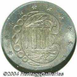 <table><tr><td><table><tr><td>1855 3CS MS65 NGC. Breen-2920. Dusky rose, aqua, and mauve colors intermingle throughout this lustrous and beautifully preserved Gem. Well struck in the centers, while the borders have only slight softness. The date is recut, most noticeably within the lower loops of the 5s. The "Variety Two" (double outlined star) is the scarcest of the three types, and the mintage of 139,000 pieces is the lowest of any pre-Civil War issue. Struck from a clashed reverse die. Population: 9 in 65, 5 finer (3/04). <BR><BR><B>Important notice:</B> Heritage usually auctions material at the rate of 200-250 lots per hour. On some occasions eBay Live bid software or the Internet may not be able to keep up with the pace of the auction. We recommend placing a realistic absentee bid now as insurance to avoid disappointment. Occasionally the auctioneer may eliminate or reject an eBay Live bid, and the auctioneer may also reopen a lot after the close of the eBay live bidding (usually because we missed an audience bid), and may reject your bid even if it shows you as the winning bidder. By bidding via eBay Live, you agree that Heritage may award the lot to another bidder at its sole discretion under the circumstances described above or any other reasonable circumstances. Since eBay bids are not shown to us until we open the lot on the floor, we treat those bids just like floor bids. In most cases the floor responds before the eBay bid is presented to us, due to Internet lag time, so for consistency we have made it a policy that floor bids are always considered first over tie eBay live bids. Also please note that all Heritage lots purchased through eBay Live carry a 20% Buyer's Premium. Please make sure you read the Terms and Conditions before you bid. <BR><BR><B>IMPORTANT ANNOUNCEMENT ABOUT RESERVES:</B> Heritage now divulges all reserves on its web site 7 days before every auction. If you want to know whether the reserve on this lot has been met, and if not, what the reserve amount is, please visit this lot page on the HeritageCoin.com web site, or email: bid@HeritageGalleries.com </span></font></td></tr></table></td></tr></table>
