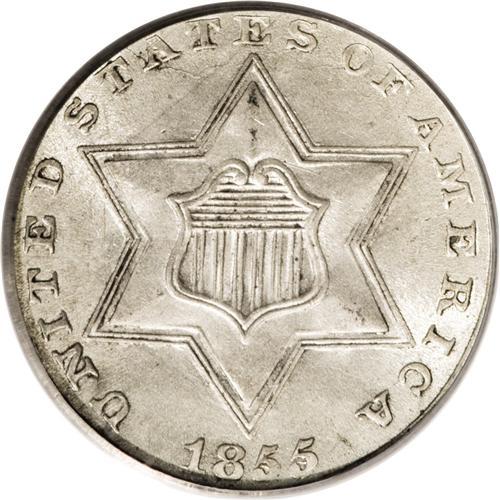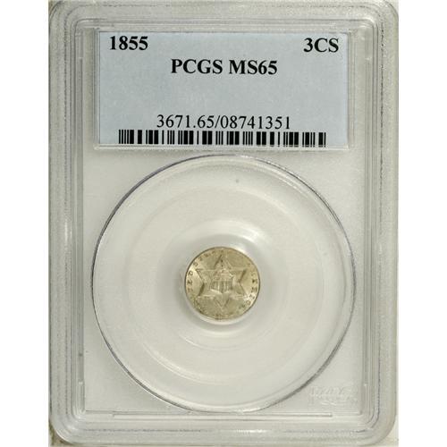 1855 3CS MS65 PCGS. A desirable Variety Two example, h