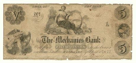 1855 $5 Obsolete Note Mechanics BankEstimate: $175